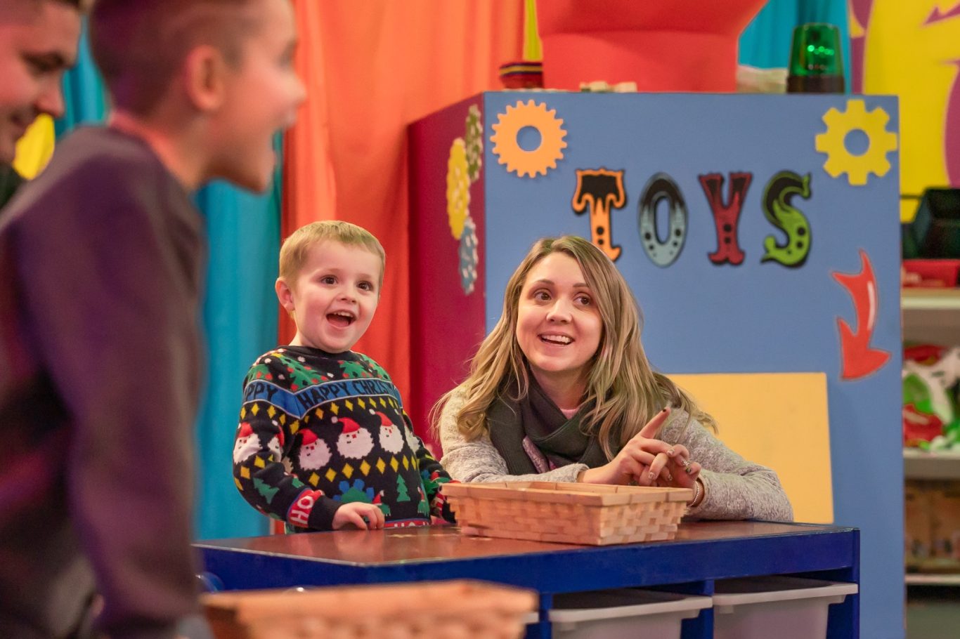 Each year the Santas Workshop was about more than your average grotto experience, it was about a journey, an experience that put the children at the heart of the adventure. Children would go to a holding room and build a toy, a toy that fits the story of the season. they would progress to the workshop and meet Santa who would read them the tale of that season. they would get given the tale, and the soft toy they have made in the precious room- and be able to see the show live on stage.