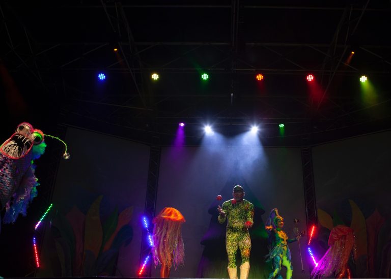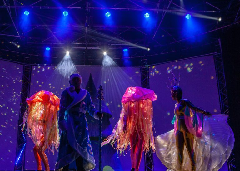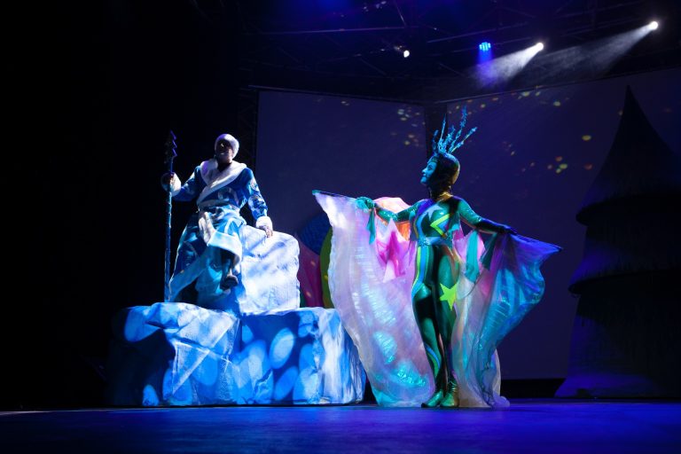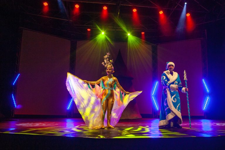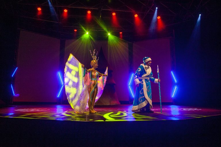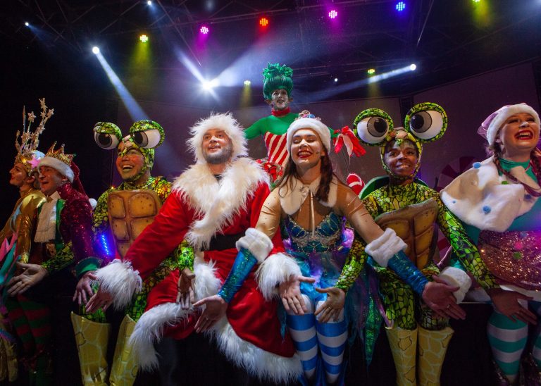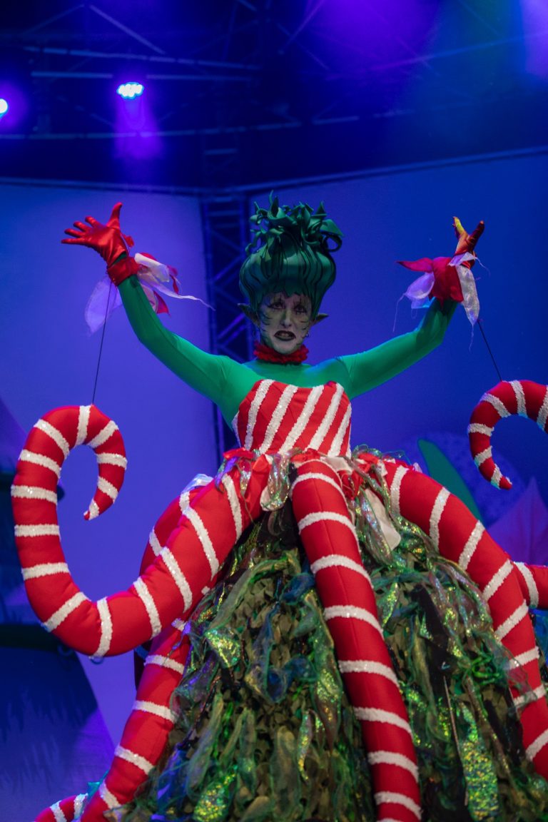 A festive spin on the classic Hans Christian Anderson tale, the Elves sought to put on a Show like no other celebrating Christmas under the sea. A villainous Candy cane sea witch, audience covering waves, cirque sea creatures and giant bubbles only scratch the surface of this epic adventure.